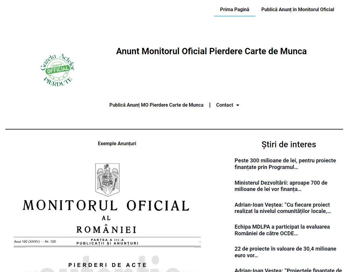 În cazul unei pierderi, primul pas este publicarea unui Anunt Monitorul Oficial Pierdere Carte de Munca .
