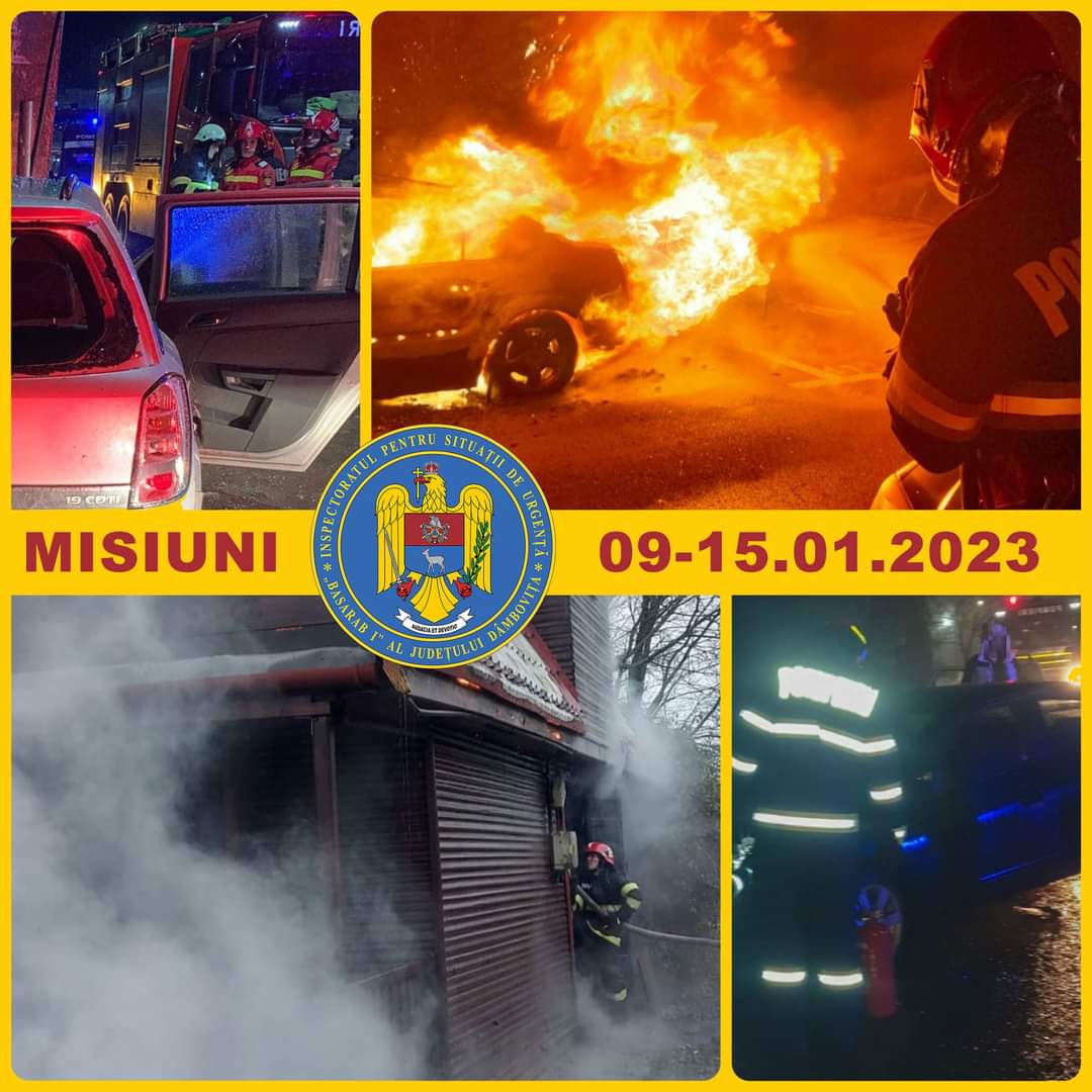 Pompierii dâmbovițeni au lucrat la foc continuu, 289 de misiuni ale pompierilor dâmbovițeni în perioada 9 – 15 ianuarie 2023: 230 cazuri medicale, 13 incendii la gospodăriile populaţiei (locuinţe, anexe gospodăreşti, vegetație uscată etc.),8 acţiuni la accidente rutiere, 16 acţiuni pentru asistența persoanelor aflate în dificultate,