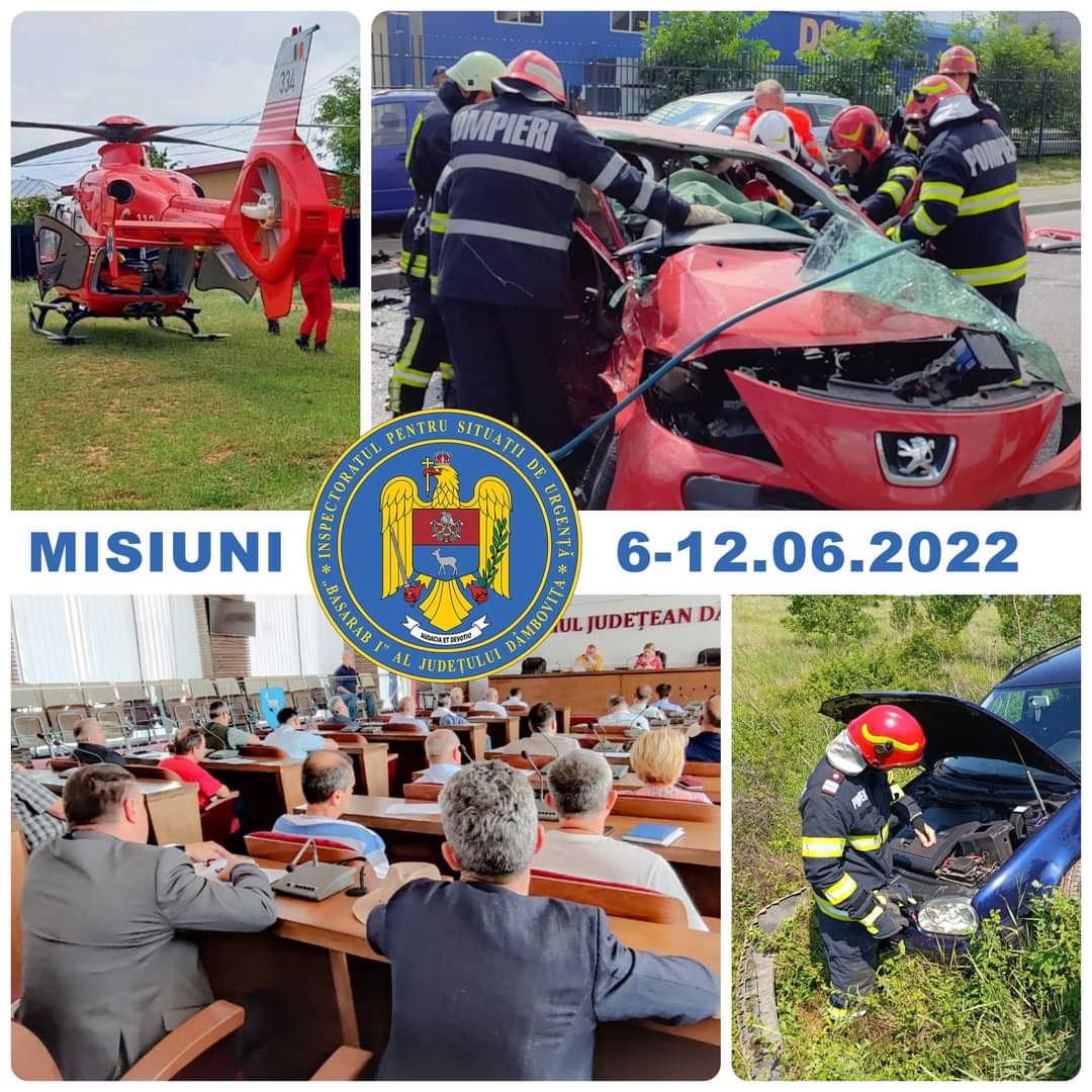 299 de misiuni ale pompierilor dâmbovițeni în perioada 6 – 12 iunie 2022, cele mai multe intervenții au fost ale echipelor SMURD – 238 cazuri medicale.