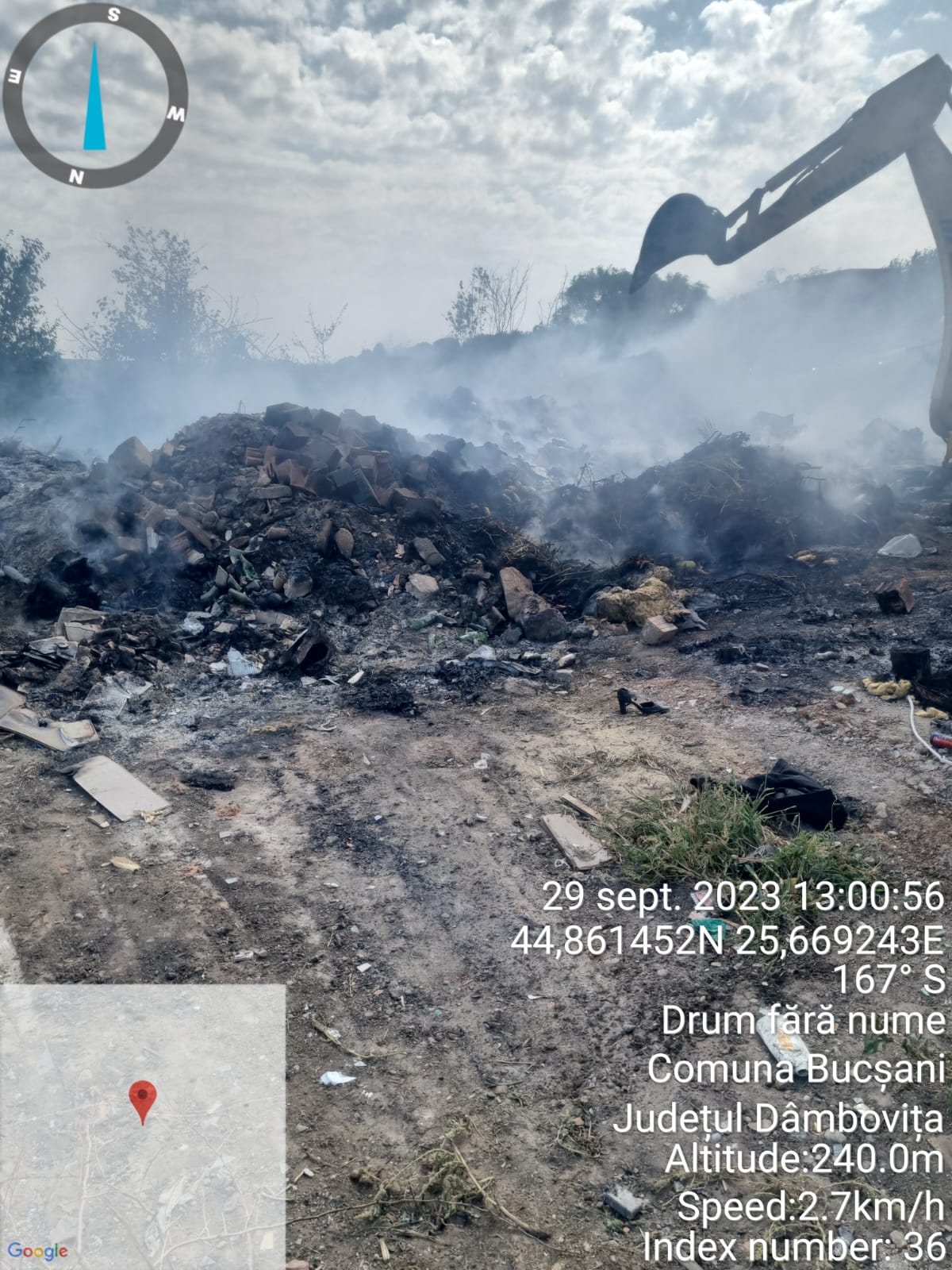 Pompierii au fost solicitați să intervină pentru stingerea unui incendiu de gunoi menajer în comuna Bucșani.
