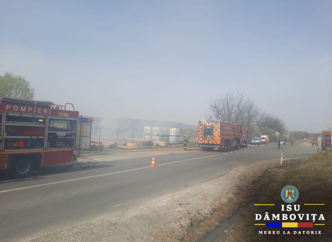 Garda de Intervenție Răcari a intervenit cu două autospeciale de stingere cu apă și spumă și un echipaj SMURD, iar Detașamentul de Pompieri Titu cu o autospecială de stingere.