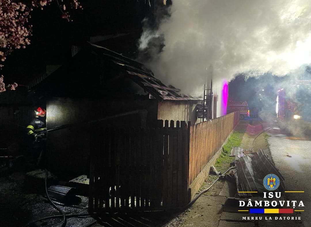 Detașamentul de Pompieri Găești a intervenit cu trei autospeciale de stingere cu apă și spumă și un echipaj SMURD.