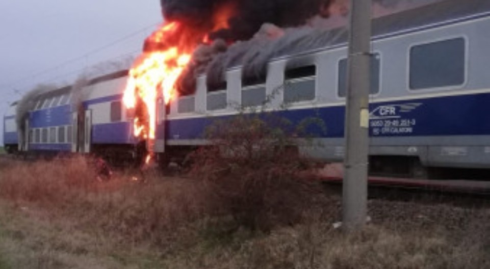 La fața locului echipajele de intervenție au constatat faptul că incendiul se manifestă la nivelul instalației electrice al primului vagon al trenului cu degajări de fum.