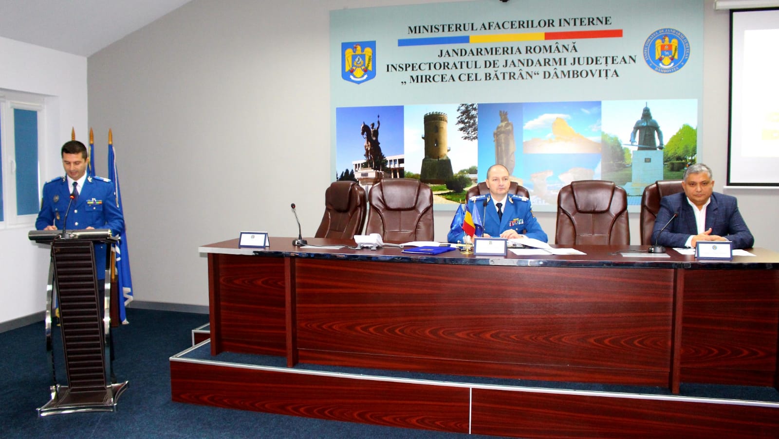 Colonel Matei Mihai, desemnat inspector şef al IJJ Dâmbovița a evidențiat sintetic adjunctului inspectorului general al Jandarmeriei Române – col. Brâncoveanu Marian, fostului inspector șef – col.(r) Matei Viorel-Dumitru şi personalului propriu bilanţul activităţilor desfăşurate pe parcursul anului 2022, precum și principalele direcții de acțiune pentru anul 2023.