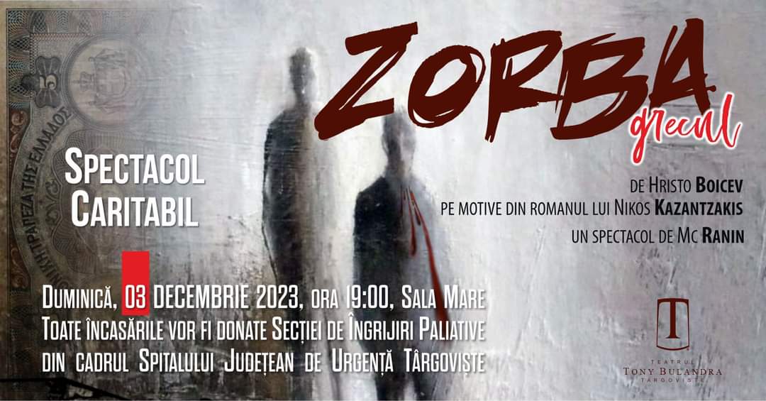 Fie că sunteți pasionați de teatru, fie că vreți să faceți o faptă bună, Teatrul Tony Bulandra va invită în lumea atrăgătoare a lui Zorba!