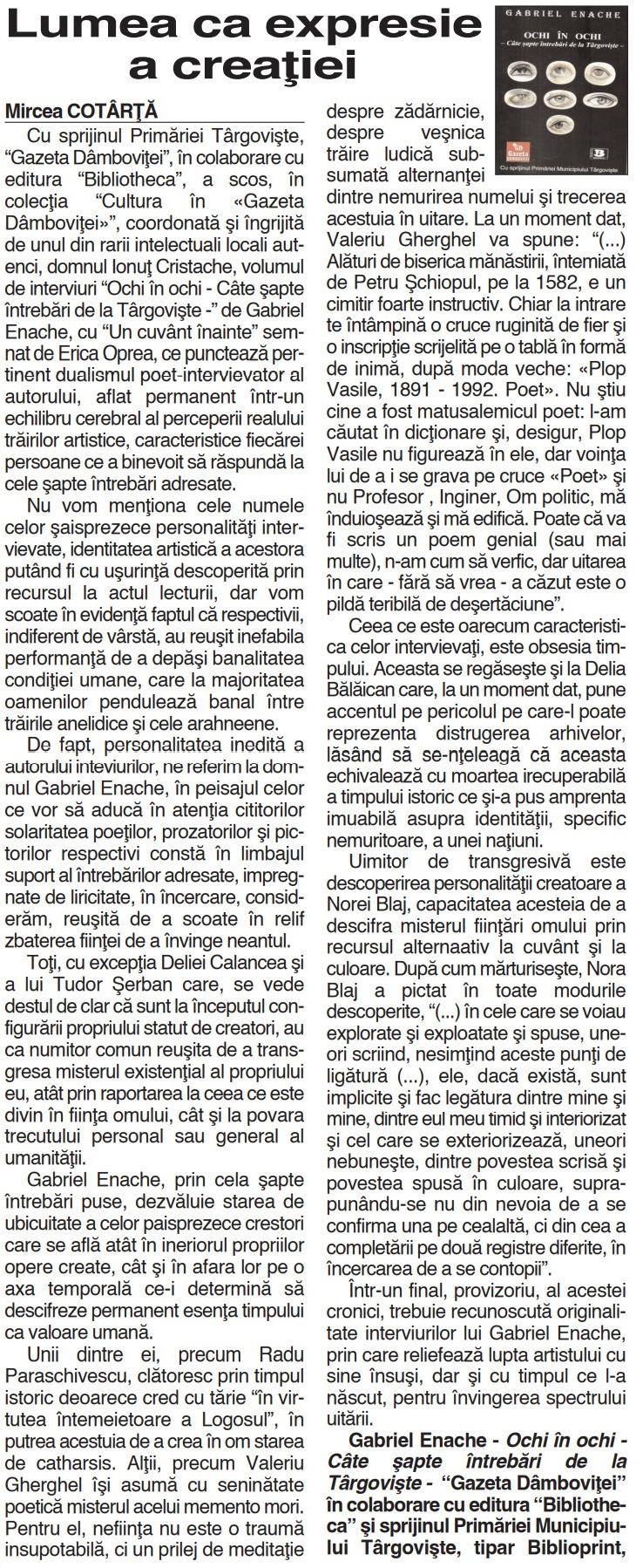 Lumea ca expresie a creației By: Mircea COTÂRŢĂ Date: 21/09/2022 FacebookTwitterPinterestWhatsApp TagsLumea ca expresie a creației Articolul precedent„CONSOLIDAREA CAPACITĂȚII UNITĂȚILOR DE ÎNVĂȚĂMÂNT DE STAT DIN COMUNA COSTEȘTII DIN VALE, JUDEȚUL DÂMBOVIȚA, ÎN VEDEREA GESTIONĂRII SITUAȚIEI DE PANDEMIE GENERATĂ DE VIRUSUL SARS-COV-2”, cod SMIS 143570Articolul următorCaravana Consumatorilor Mircea COTÂRŢĂ LĂSAȚI UN MESAJ Renunțați la răspuns Comentariu: Vă rugăm să introduceți comentariul dvs.! Nume:* Introduceți aici numele dvs. Email:* Ați introdus o adresă de e-mail incorectă! Vă rugăm să introduceți adresa dvs. de e-mail aici Website: Salvați numele meu, adresa de e-mail și site-ul web în acest browser pentru data viitoare i comentariu. Popular Eisberg, un reper privind securitatea alimentară a salatelor gata de consum Plafonarea adaosului la alimente, când inflaţia sare de 5% Atenție la bijuterii periculoase! Colierul cu pandantiv fluture vândut online, prezintă riscuri chimice serioase Autoritățile au decis să elimine pagurile impuse laboratoarelor private, astfel încât românii să-și poată face investigații decontate oricând au nevoie, nu doar în primele... Ziua Internațională a Nonviolenței în Școală la Târgoviște ȘtiriDâmbovița ANUNȚ Ziarul Dambovita - 30/01/2026 Municipiul Moreni cu sediul în strada Alexandru Ioan Cuza,... ANUNȚ Ziarul Dambovita - 30/01/2026 Municipiul Moreni cu sediul în strada Alexandru Ioan Cuza,... ANUNȚ Ziarul Dambovita - 30/01/2026 Municipiul Moreni cu sediul în strada Alexandru Ioan Cuza,... ANUNȚ Ziarul Dambovita - 30/01/2026 Municipiul Moreni cu sediul în strada Alexandru Ioan Cuza,...
