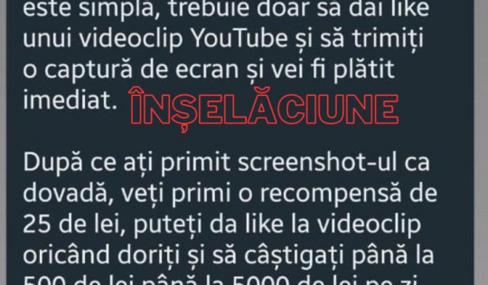 Mare grijă la mesajele nesolicitate pe e-mail sau în social media prin care se oferă câștiguri rapide sau mari. Nu accesa link-urile de pe platformele de socializare care promit câștiguri masive de bani, într-un termen scurt de timp;