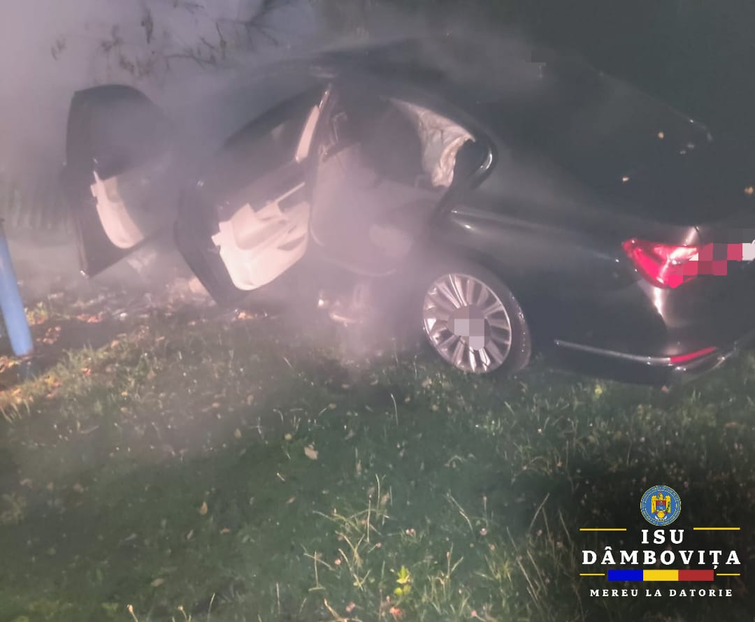 Pompierii au fost solicitați să intervină în cazul unui incendiu produs la un autoturism în localitatea Mănești, pe DJ 702B.