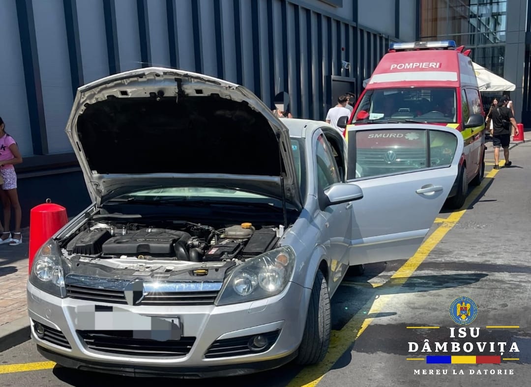 Un incendiu izbucnit in parcarea Dâmbovița Mall din Târgoviște, după ce un autoturism parcat în apropierea centrului comercial a fost cuprins de flăcări.