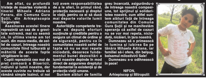 MESAJ DE CONDOLEANŢE, LA PIERDEREA UNEI TINERE FIICE A ARHIEPISCOPIEI TARGOVIŞTEI By: Ziarul Dambovita Date: 24/09/2019 FacebookTwitterPinterestWhatsApp MESAJ DE CONDOLEANŢE, LA PIERDEREA UNEI TINERE FIICE A ARHIEPISCOPIEI TARGOVIŞTEI Articolul precedentDpt. Oana Vlăducă, întrebare privind alocările financiare pentru înfiinţarea şi extinderea reţelelor de gaze naturaleArticolul următorColectivul redacţional şi tipografii cotidianului „Dâmboviţa” sunt alături de Alexandru Mihai Roşoiu Ziarul Dambovita LĂSAȚI UN MESAJ Renunțați la răspuns Comentariu: Vă rugăm să introduceți comentariul dvs.! Nume:* Introduceți aici numele dvs. Email:* Ați introdus o adresă de e-mail incorectă! Vă rugăm să introduceți adresa dvs. de e-mail aici Website: Salvați numele meu, adresa de e-mail și site-ul web în acest browser pentru data viitoare i comentariu. Δ Acest site folosește Akismet pentru a reduce spamul. Află cum sunt procesate datele comentariilor tale. Popular Adrenalină și suspans la Cinema Independența din Târgoviște: „Anaconda” ajunge pe marele ecran A apărut Almanahul bisericesc 2026 al Arhiepiscopiei Târgoviștei – o oglindă a vieții pastorale și academice contemporane CJ Dâmbovița încheie o nouă ediție a programului de internship Avertisment pentru turiști: Recomandările jandarmilor montani înainte de urcarea în Bucegi Restricții de circulație în Ungaria, pe Drumul Principal 42 punct frontieră Artand-Borș, începând cu 1 ianuarie 2026! ȘtiriDâmbovița Județul Dâmbovița, sub asediul gerului – temperaturi de până la -11 grade Celsius Roxana - Ionela Botea - 02/01/2026 Dimineață geroasă – 2 ianuarie , temperaturi minime înregistrate... Vești bune pentru fermieri: începe depunerea cererilor pentru bunăstarea animalelor (DR-06) Roxana - Ionela Botea - 02/01/2026 Fermierii din sectorul zootehnic au motive de optimism la... Mani Gyenes, din nou la startul Raliului Dakar: România are reprezentant în cursa supremă a anduranței Roxana - Ionela Botea - 02/01/2026 România va fi din nou reprezentată la cel mai... Noi taxe și impozite în vigoare de la 1 ianuarie 2026 Roxana - Ionela Botea - 02/01/2026 Începând cu 1 ianuarie 2026, în România au intrat...