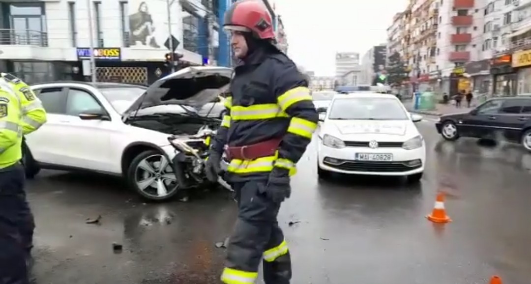 Grav accident rutier, în municipiul Târgoviște, str. Nicolae Radian, o persoană rănită și pagube materiale însemnate. Au fost grav avariate ambele mașini și un magazin.