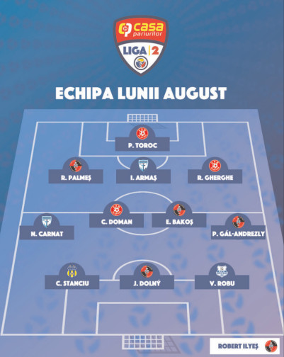 Iată cum arată un prim 11 al jucătorilor remarcați în această lună, împreună cu antrenorul lunii august în Liga 2 Casa Pariurilor: