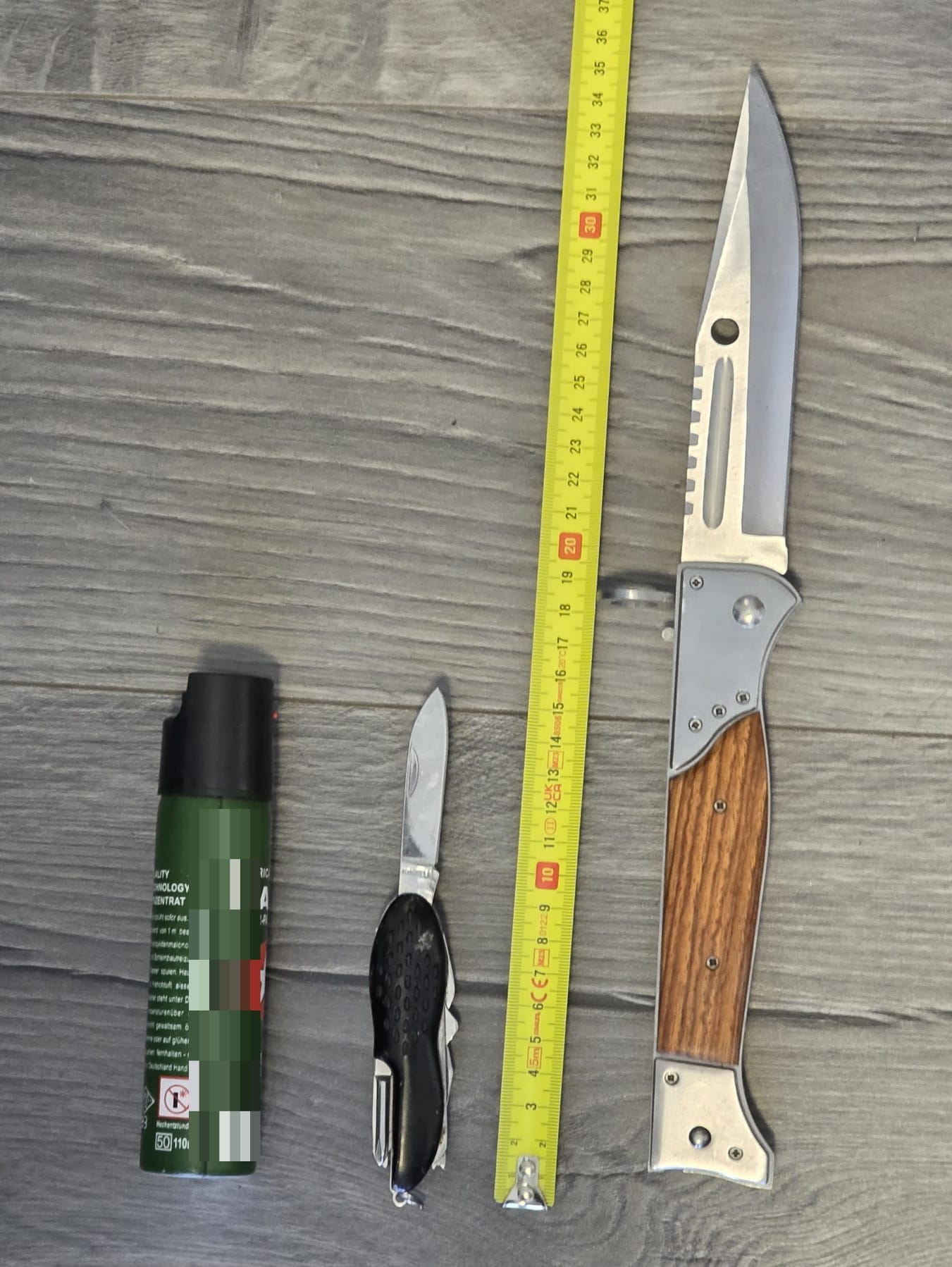 Incidentul s-a produs în zona punctului de control al accesului către sălile de judecată, unde, în urma verificării bagajului, au fost descoperite un cuțit pliabil tip baionetă, un briceag multifuncțional și un spray iritant-lacrimogen.
