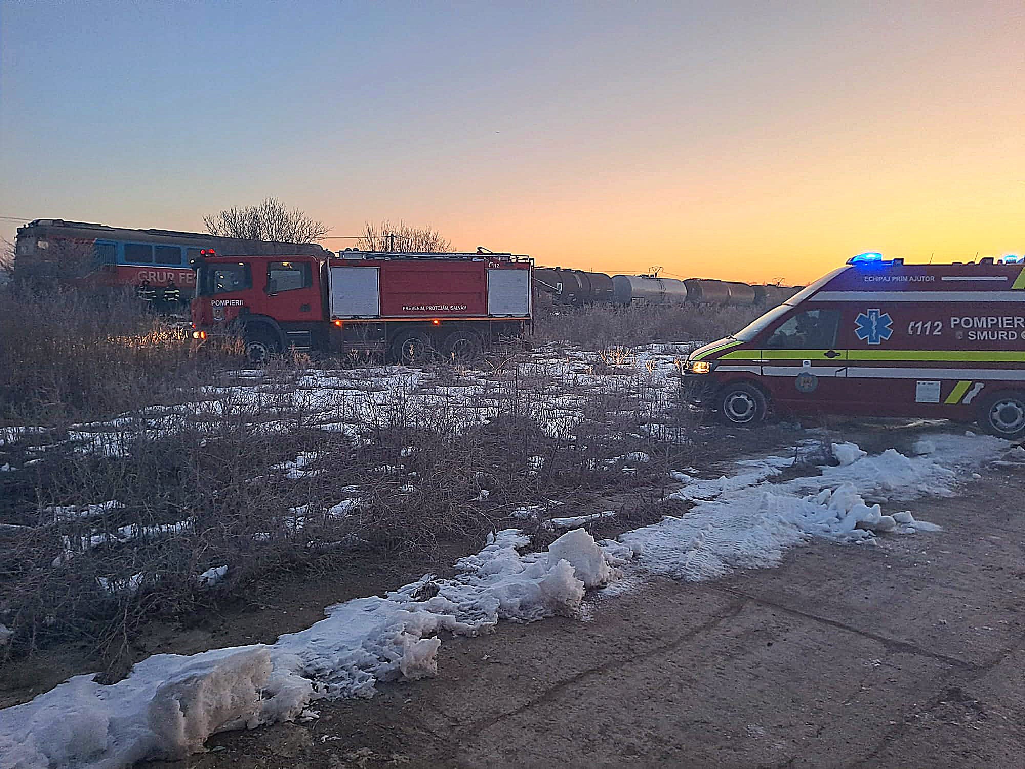 O locomotivă a fost cuprinsă de flăcări, pompierii au fost solicitați să intervenă pentru stingerea unui incendiu produs la locomotiva unui tren de marfă între localitățile Ghergani și Ghimpați.
