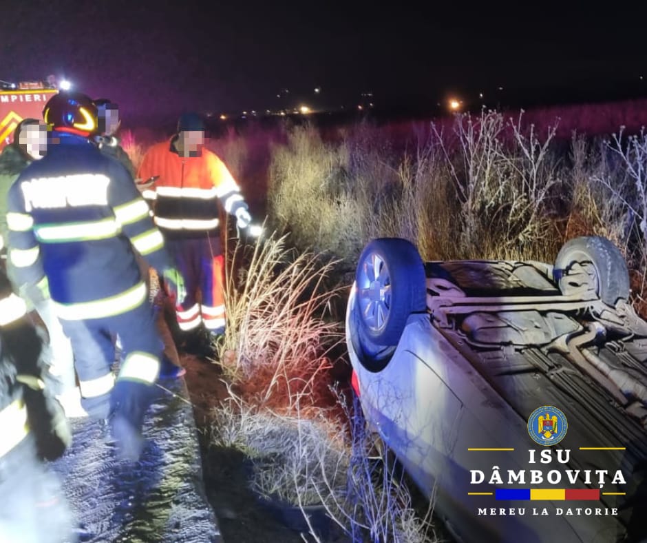 Din primele cercetări, se pare că o șoferiță de 39 de ani, în timp ce ar fi condus un autoturism, ar fi părăsit partea carosabilă și s-ar fi răsturnat într-un șanț.