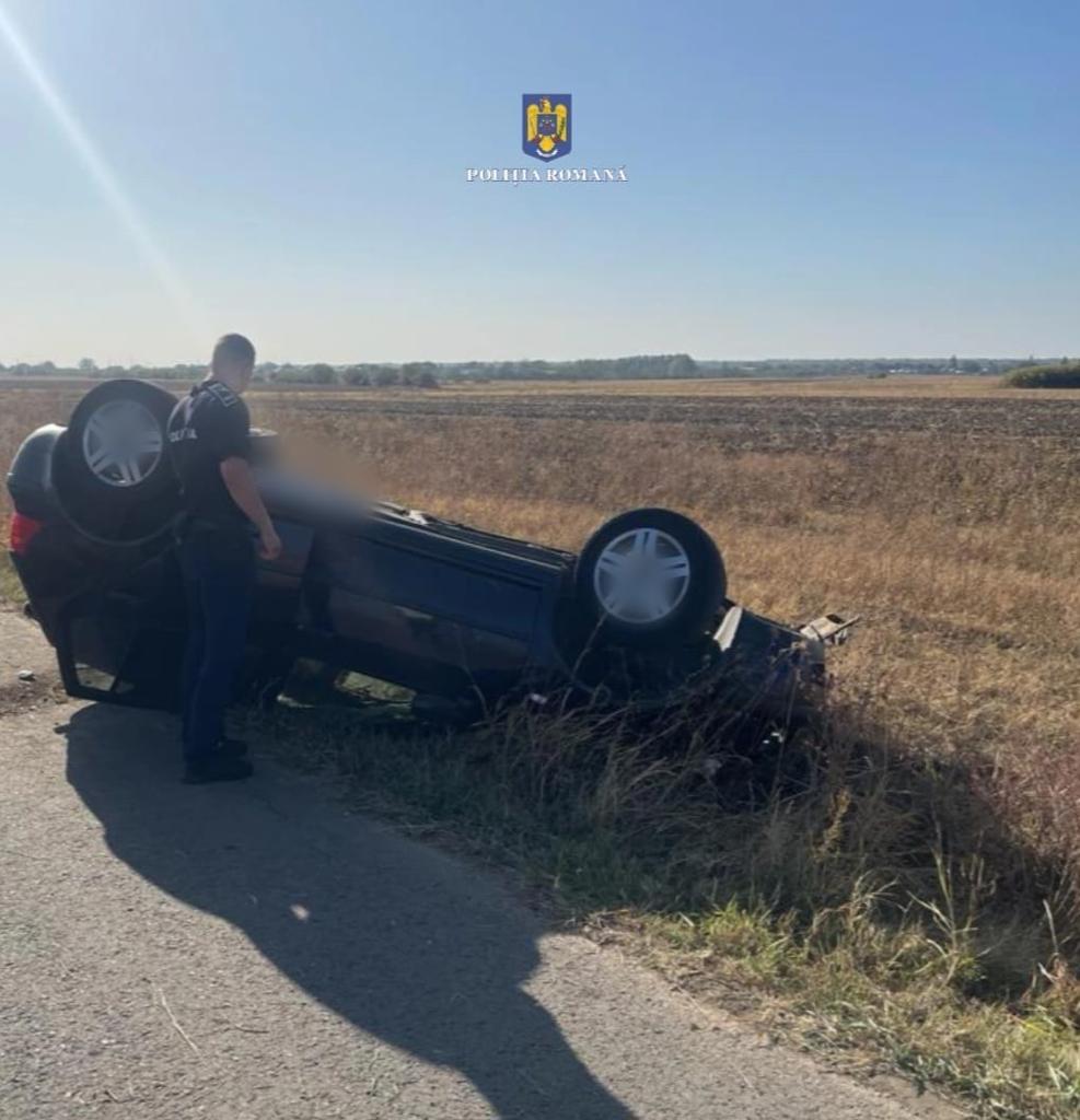 O șoferiță s-a răsturnat cu mașina, o clipă de neatenție o putea costa viața