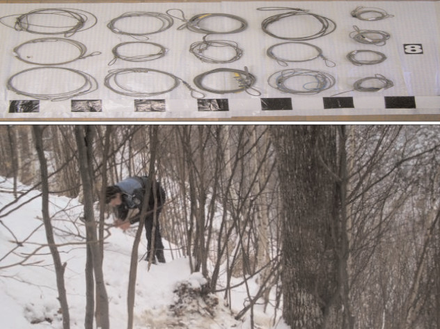 Poliţiştii dâmboviţeni din cadrul Serviciului Arme, Explozivi şi Substanţe Periculoase au efectuat două percheziţii domiciliare pe raza localităţii Ocniţa, la persoane bănuite de braconaj cinegetic. În urma descinderilor, la domiciliile acestora au fost descoperite 4 trofee de vânătoare, 79 de kilograme de carne de vânat, mai multe resturi de cadavru suspeceptibil a fi mistreţ, 3 topoare cu urme de sânge şi 11 laţuri. Au fost puse în executare 2 mandate de aducere, persoanele depistate fiind conduse la sediul Inspectoratului pentru audieri. În urma cercetărilor efectuate, poliţiştii au stabilit că, în perioada 27 -31 ianuarie a.c., 4 persoane, cu vârste cuprinse între 16 şi 51 de ani, toţi din Ocniţa, ar fi capturat 3 mistreţi cu ajutorul unor laţuri montate în lăstărişul din spatele caselor.