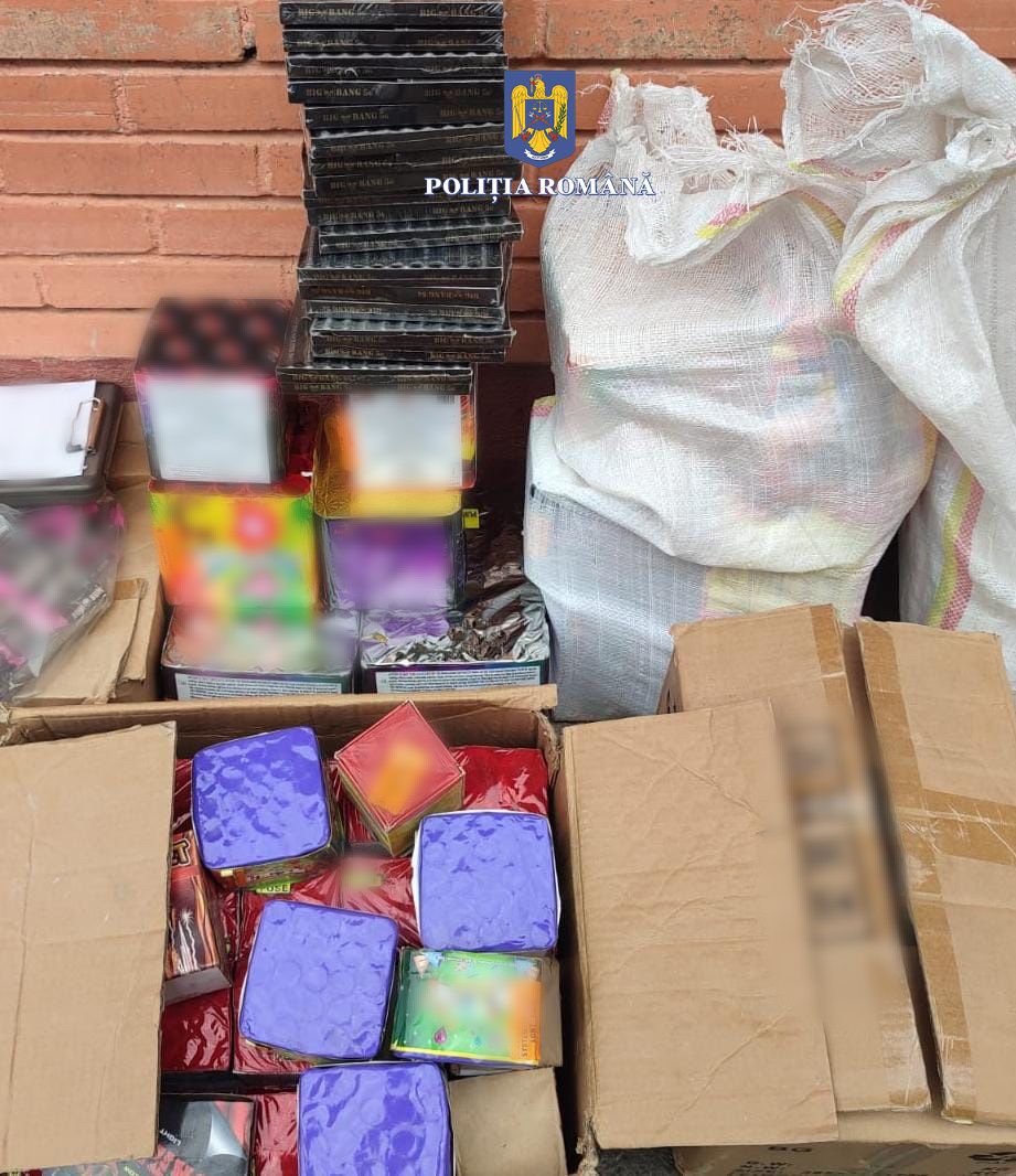 În urma perchezițiilor, polițiștii au descoperit 190 de kilograme de articole pirotehnice. de diferite categorii și tipuri, destinate utilizării de către pirotehnicieni, acestea fiind ridicate în vederea continuării cercetărilor.