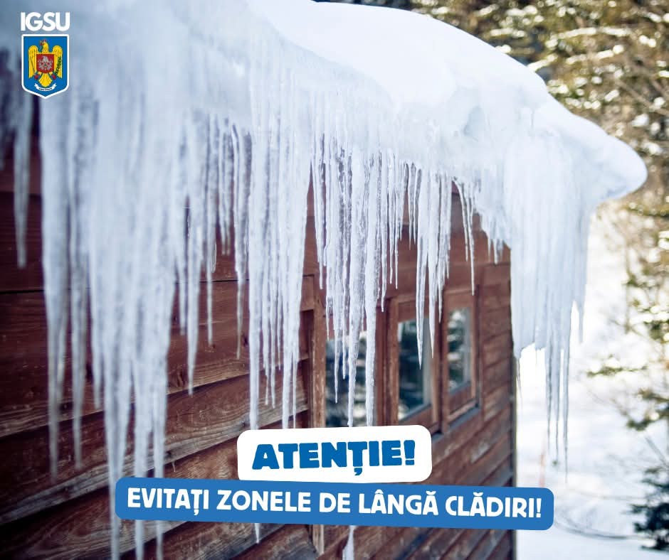 Evitați deplasarea sau staționarea în apropierea imobilelor unde se observă acumulări mari de zăpadă ori țurțuri.