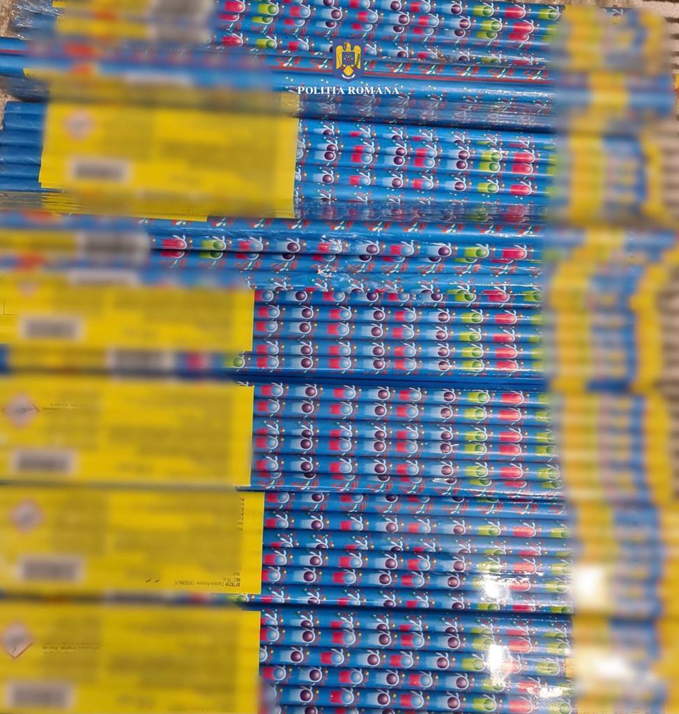 În urma percheziției efectuate, polițiștii au descoperit și indisponibilizat 28 de kilograme de articole pirotehnice din categoriile P1, F2, F3,F4, deținute ilegal în vederea comercializării.