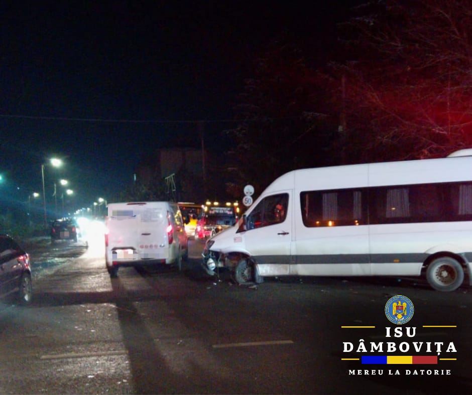 Pe DN 1A Crevedia s-a produs o coliziune între două autoturisme și un microbuz de transport persoane