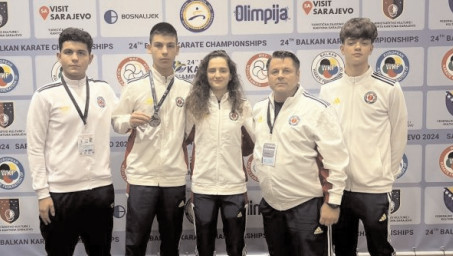 Un sportiv de la CS Târgoviște a urcat pe podiumul de premiere la Campionatul Balcanic de Karate WKF pentru cadeți, juniori și U21, găzduit de orașul Sarajevo, în perioada 8-10 noiembrie. Fabian Constantin a cucerit medalia de argint alături de echipa masculină a României de kumite cadeți. Alături de karateka clubului nostru, în echipa tricoloră de kumite s-au mai regăsit sportivii Ștefan Crivaț, Cristian Doloman, Andrei Luță, Daniel Burnaz, Vlad Rosescu și Robert Dumitru.