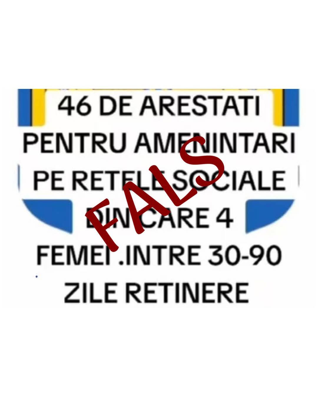 Poliția Română a transmis un mesaj ferm de clarificare, în urma apariției în spațiul public a unor informații eronate privind presupusa arestare a 46 de persoane pentru amenințări făcute pe rețelele sociale. Instituția califică aceste afirmații drept false, menționând că ele urmăresc subminarea încrederii în autorități și generarea unei stări nejustificate de teamă în rândul cetățenilor.