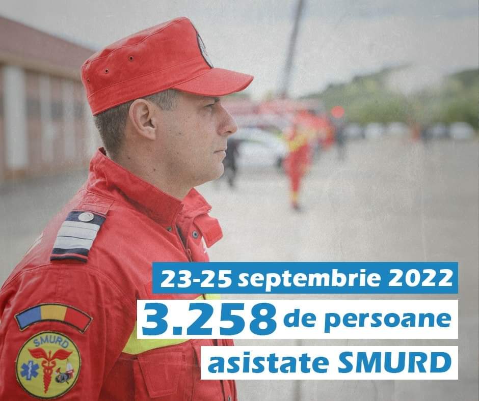 În acest sfârșit de săptămână, la nivel național, pompierii militari au gestionat 3.849 intervenții în situații de urgență. Majoritatea dintre acestea au constat în asistență medicală, echipajele SMURD acționând în 3.223 solicitări.