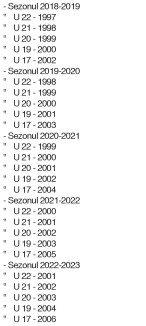 pentru jucătorii U 22, U 21, U 20, U 19 şi U 17