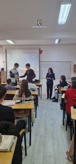 Polițiștii din cadrul Compartimentului de Analiză și Prevenire a Criminalității au discutat cu elevii din clasa a IX-a de la Colegiul Național ”Vladimir Streinu” din orașul Găești despre riscurile asociate consumului de substanțe interzise.