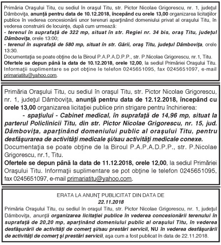 Primăria Oraşului Titu By: Ziarul Dambovita Date: 26/11/2018 FacebookTwitterPinterestWhatsApp Primăria Oraşului Titu TagsPrimăria Oraşului Titu Articolul precedentPOT CE POŢI ŞI TU, ANGAJEAZĂ-MĂ! – 3 decembrie, Ziua Internaţională a Persoanelor cu DizabilităţiArticolul următorIn perioada 03.12.2018 -07.12.2018, SUCURSALA DE DISTRIBUŢIE A ENERGIEI ELECTRICE Târgovişte execută lucrări Ziarul Dambovita LĂSAȚI UN MESAJ Renunțați la răspuns Comentariu: Vă rugăm să introduceți comentariul dvs.! Nume:* Introduceți aici numele dvs. Email:* Ați introdus o adresă de e-mail incorectă! Vă rugăm să introduceți adresa dvs. de e-mail aici Website: Salvați numele meu, adresa de e-mail și site-ul web în acest browser pentru data viitoare i comentariu. Popular Transport ilegal de material lemnos, descoperit de polițiști în Braniștea Activitate educativ-duhovnicească dedicată Sfinților Trei Ierarhi, la Bucșani Eisberg, un reper privind securitatea alimentară a salatelor gata de consum Plafonarea adaosului la alimente, când inflaţia sare de 5% Atenție la bijuterii periculoase! Colierul cu pandantiv fluture vândut online, prezintă riscuri chimice serioase ȘtiriDâmbovița Atenție, nou val de fraude financiare online Roxana - Ionela Botea - 30/01/2026 Autoritățile atrag atenția asupra unei campanii de fraudă online... Transport ilegal de material lemnos, descoperit de polițiști în Braniștea Roxana - Ionela Botea - 30/01/2026 Polițiștii din cadrul Poliției Orașului Titu au identificat un... AJF Dâmbovița dă startul înscrierilor pentru un nou curs de formare arbitri Roxana - Ionela Botea - 30/01/2026 „Intră în joc!” Asociația Județeană de Fotbal Dâmbovița a anunțat... Chindia Târgoviște joacă acasă!Meci cu ARO Muscelul Câmpulung Muscel, intrare liberă pentru suporteri Roxana - Ionela Botea - 30/01/2026 Vești excelente pentru iubitorii fotbalului din Târgoviște! Chindia Târgoviște...