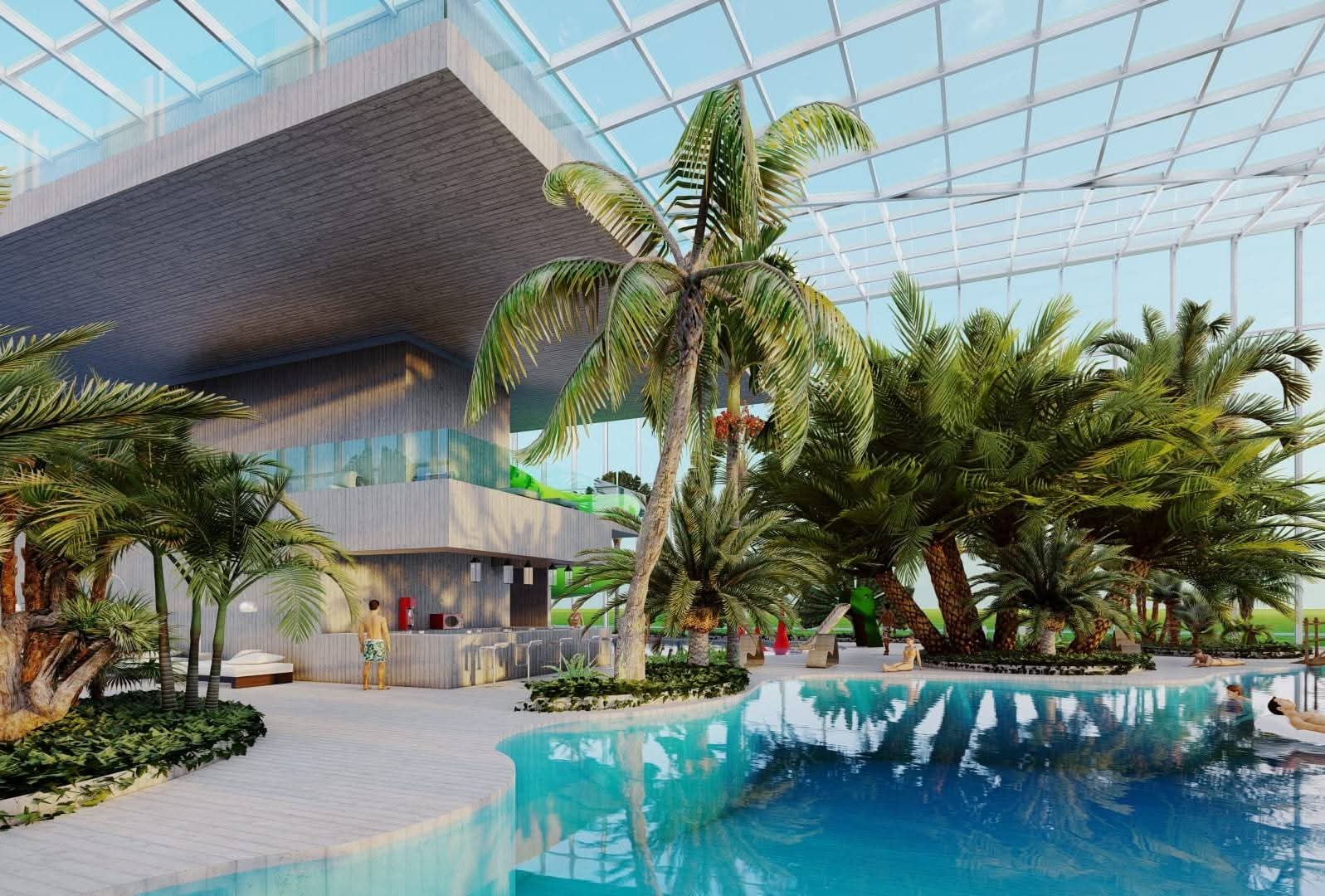 Piscină cu valuri și tobogane, pentru momente de distracție intensă;