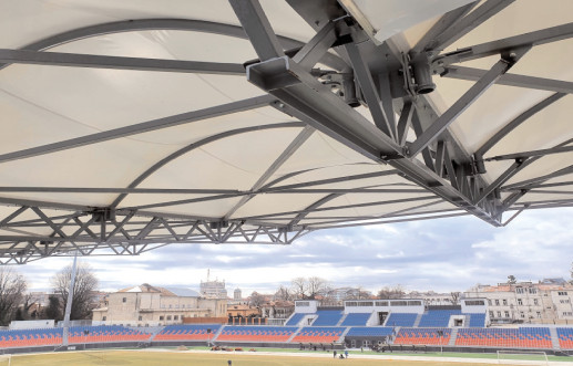 Cristian Stan:”Acoperișul este pus integral, mai sunt de fixat zonele de pe spate și meshul pe o parte a fațadei tribunei noi.