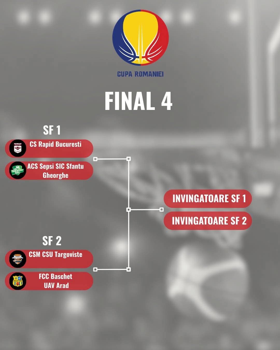 Federația Română de Baschet a organizat tragerea la sorți la sediul său, evenimentul fiind transmis în direct pe FRB TV, pe platforma YouTube. În urma tragerii la sorți au fost stabilite cele două semifinale ale competiției.