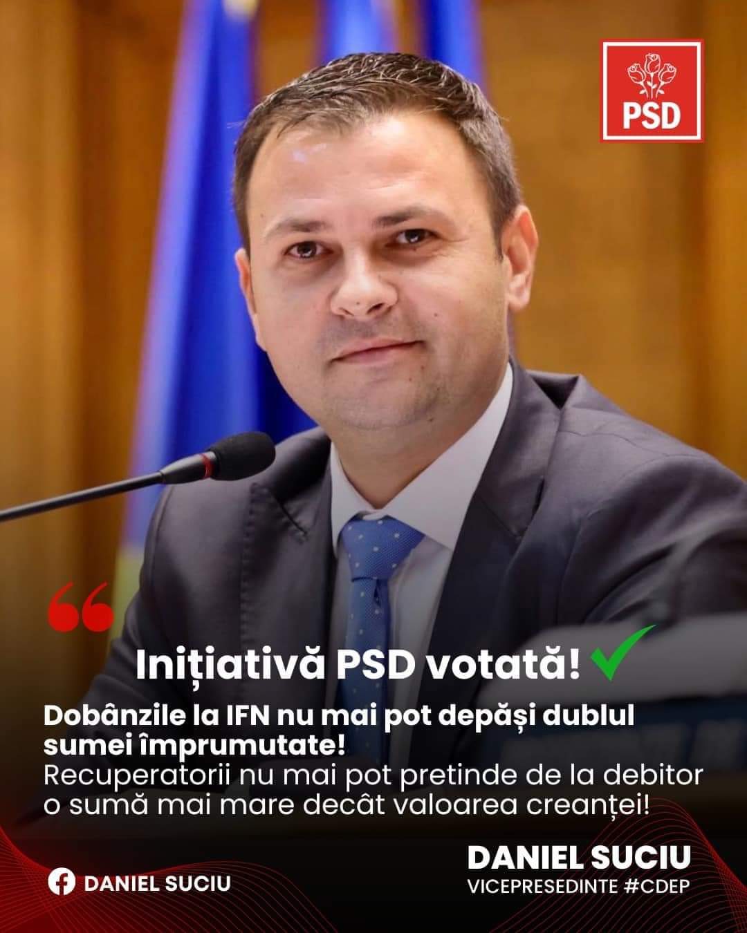 După inițiativele PSD de plafonare a prețurilor la energie și limitarea adaosurilor la alimente, ieri a fost aprobat în Parlament proiectul PSD de plafonare a dobânzilor la IFN-uri.