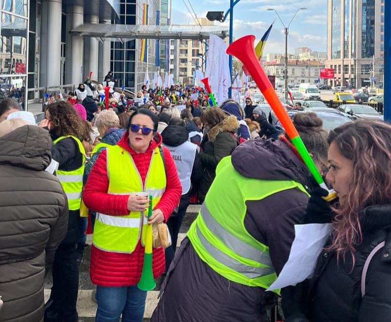 Au protestat grefierii din cadrul instanțelor de judecată, Sindicatul Naţional al Grefei Judiciare Dicasterial, afiliat la Blocul Național Sindical, a organizat un miting de PROTEST la sediul Înalta Curte de Casație și Justiție din București. Peste 1000 de persoane au participat.