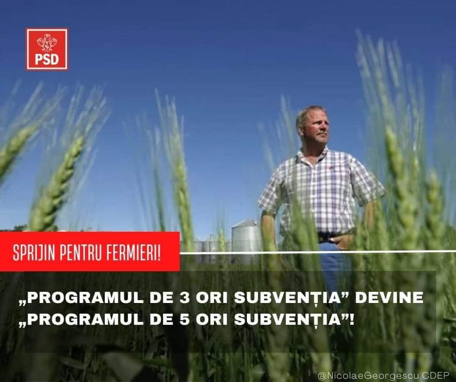 Home»Politică»PSD : Ministerul Agriculturii și Dezvoltării Rurale crește valoarea creditelor pe care fermierii le pot accesa în condiții avantajoase.