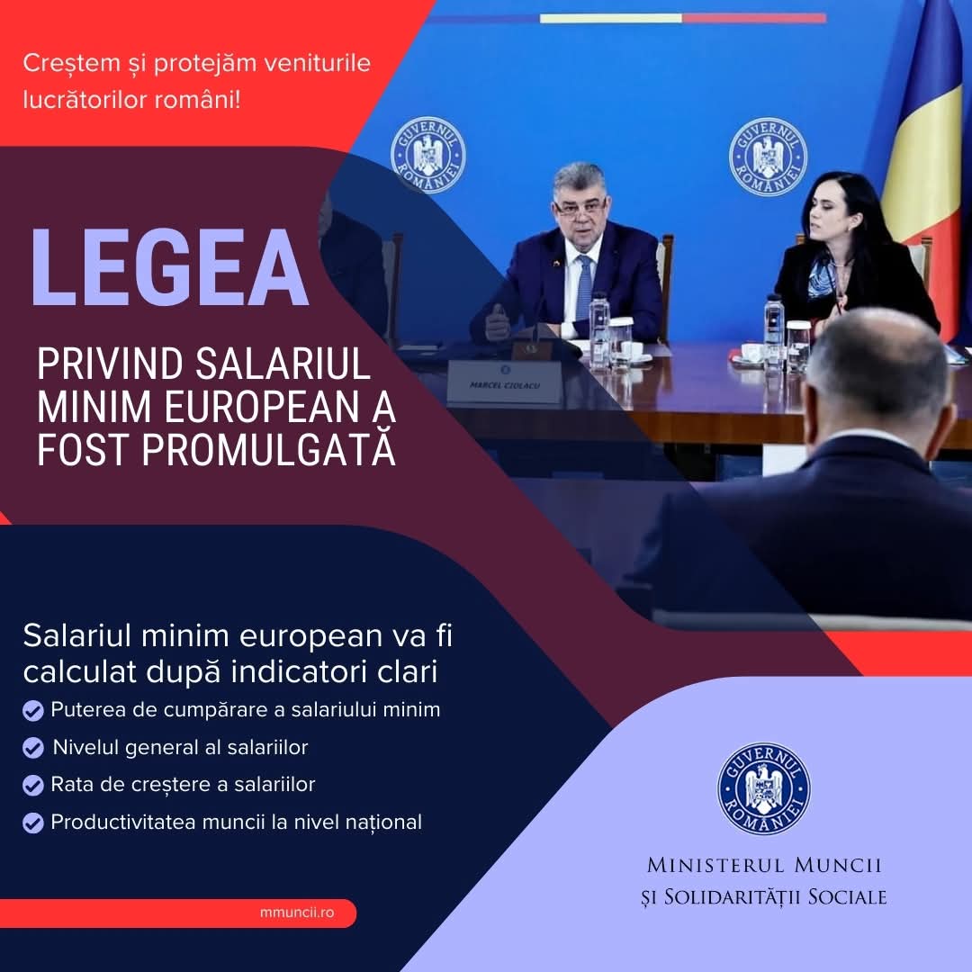 România face un pas mare înainte pentru protejarea drepturilor lucrătorilor! Legea privind salariul minim european a fost promulgată, un demers esențial pentru asigurarea unui trai decent pentru toți angajații din țară. Proiectul, inițiat de Ministerul Muncii și Solidarității Sociale, transpune Directiva UE 2022/2041, și are ca scop reducerea inegalităților salariale, prin creșterea sustenabilă a veniturilor.