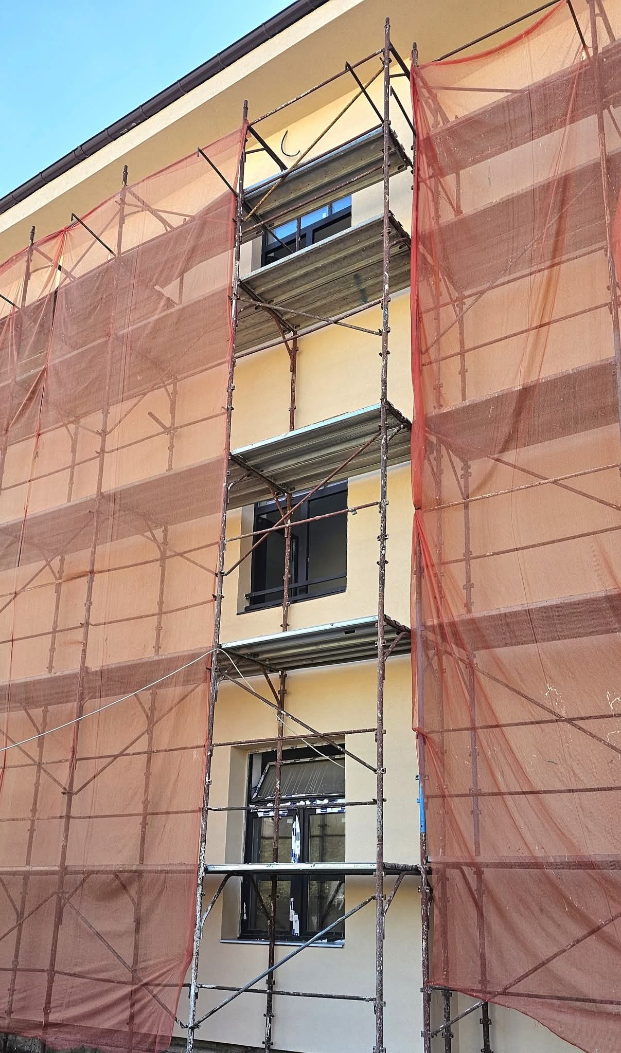 Reabilitarea sălii de sport: supraetajarea corpului existent pentru o sală de gimnastică, anvelopare și înlocuirea tâmplăriei.