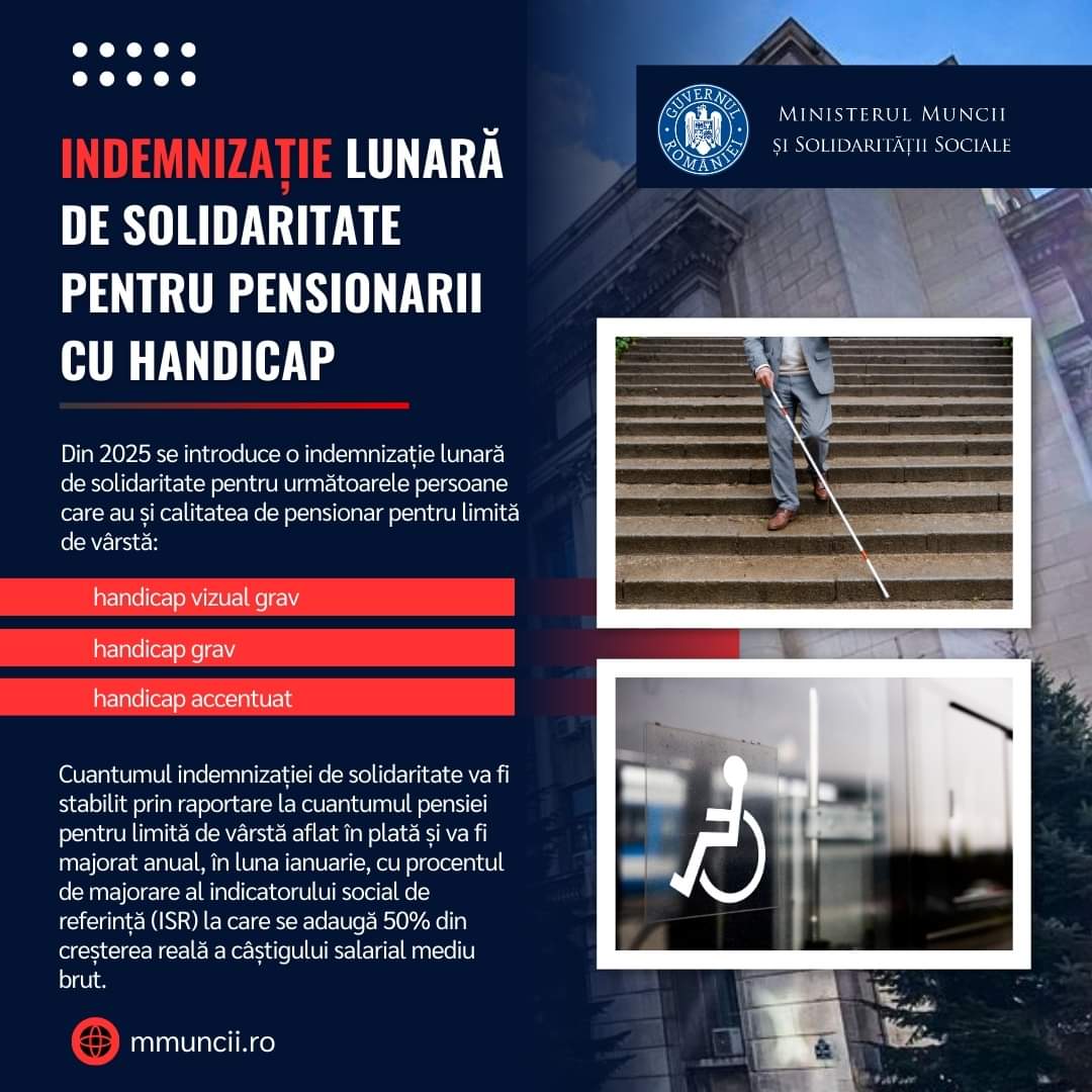 Guvernul României a aprobat o măsură importantă care va aduce un sprijin substanțial pensionarilor cu handicap grav, începând cu 1 ianuarie 2025. Astfel, persoanele cu handicap vizual grav, handicap grav și handicap accentuat care beneficiază de pensie pentru limită de vârstă vor primi o indemnizație lunară de solidaritate, menită să sporească protecția socială și să îmbunătățească condițiile de trai ale acestora.