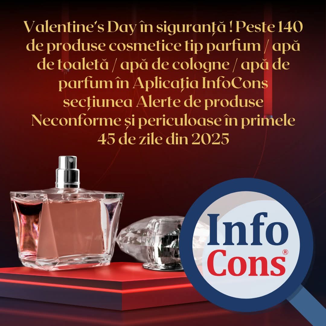 Așadar, înainte de a achiziționa parfumuri sau ape de toaletă ca și cadou pentru 14 februarie, nu uita să folosești aplicația InfoCons pentru a fi sigur că alegerea ta este una sănătoasă și fără pericole!