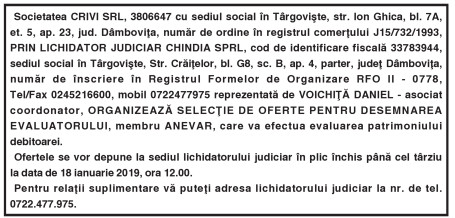 Societatea CRIVI SRL By: Ziarul Dambovita Date: 21/12/2018 FacebookTwitterPinterestWhatsApp Societatea CRIVI SRL TagsSocietatea CRIVI SRL Articolul precedentEI SUNT CEI MAI BUNI SPORTIVI AI JUDEŢULUI IN ANUL 2018Articolul următorSubscrisa CHINDIA SPRL Ziarul Dambovita LĂSAȚI UN MESAJ Renunțați la răspuns Comentariu: Vă rugăm să introduceți comentariul dvs.! Nume:* Introduceți aici numele dvs. Email:* Ați introdus o adresă de e-mail incorectă! Vă rugăm să introduceți adresa dvs. de e-mail aici Website: Salvați numele meu, adresa de e-mail și site-ul web în acest browser pentru data viitoare i comentariu. Δ Acest site folosește Akismet pentru a reduce spamul. Află cum sunt procesate datele comentariilor tale. Popular Adrenalină și suspans la Cinema Independența din Târgoviște: „Anaconda” ajunge pe marele ecran A apărut Almanahul bisericesc 2026 al Arhiepiscopiei Târgoviștei – o oglindă a vieții pastorale și academice contemporane CJ Dâmbovița încheie o nouă ediție a programului de internship Avertisment pentru turiști: Recomandările jandarmilor montani înainte de urcarea în Bucegi Restricții de circulație în Ungaria, pe Drumul Principal 42 punct frontieră Artand-Borș, începând cu 1 ianuarie 2026! ȘtiriDâmbovița Județul Dâmbovița, sub asediul gerului – temperaturi de până la -11 grade Celsius Roxana - Ionela Botea - 02/01/2026 Dimineață geroasă – 2 ianuarie , temperaturi minime înregistrate... Vești bune pentru fermieri: începe depunerea cererilor pentru bunăstarea animalelor (DR-06) Roxana - Ionela Botea - 02/01/2026 Fermierii din sectorul zootehnic au motive de optimism la... Mani Gyenes, din nou la startul Raliului Dakar: România are reprezentant în cursa supremă a anduranței Roxana - Ionela Botea - 02/01/2026 România va fi din nou reprezentată la cel mai... Noi taxe și impozite în vigoare de la 1 ianuarie 2026 Roxana - Ionela Botea - 02/01/2026 Începând cu 1 ianuarie 2026, în România au intrat...