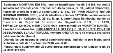 Societatea MONTANA EDI SRL By: Ziarul Dambovita Date: 24/09/2018 FacebookTwitterPinterestWhatsApp Societatea MONTANA EDI SRL TagsSocietatea MONTANA EDI SRL Articolul precedentPsihologia politică şi apărarea socială (XXIX)Articolul următorAnunţ public privind depunerea solicitării de emitere a acordului de mediu Ziarul Dambovita LĂSAȚI UN MESAJ Renunțați la răspuns Comentariu: Vă rugăm să introduceți comentariul dvs.! Nume:* Introduceți aici numele dvs. Email:* Ați introdus o adresă de e-mail incorectă! Vă rugăm să introduceți adresa dvs. de e-mail aici Website: Salvați numele meu, adresa de e-mail și site-ul web în acest browser pentru data viitoare i comentariu. Δ Acest site folosește Akismet pentru a reduce spamul. Află cum sunt procesate datele comentariilor tale. Popular Adrenalină și suspans la Cinema Independența din Târgoviște: „Anaconda” ajunge pe marele ecran A apărut Almanahul bisericesc 2026 al Arhiepiscopiei Târgoviștei – o oglindă a vieții pastorale și academice contemporane CJ Dâmbovița încheie o nouă ediție a programului de internship Avertisment pentru turiști: Recomandările jandarmilor montani înainte de urcarea în Bucegi Restricții de circulație în Ungaria, pe Drumul Principal 42 punct frontieră Artand-Borș, începând cu 1 ianuarie 2026! ȘtiriDâmbovița Județul Dâmbovița, sub asediul gerului – temperaturi de până la -11 grade Celsius Roxana - Ionela Botea - 02/01/2026 Dimineață geroasă – 2 ianuarie , temperaturi minime înregistrate... Vești bune pentru fermieri: începe depunerea cererilor pentru bunăstarea animalelor (DR-06) Roxana - Ionela Botea - 02/01/2026 Fermierii din sectorul zootehnic au motive de optimism la... Mani Gyenes, din nou la startul Raliului Dakar: România are reprezentant în cursa supremă a anduranței Roxana - Ionela Botea - 02/01/2026 România va fi din nou reprezentată la cel mai... Noi taxe și impozite în vigoare de la 1 ianuarie 2026 Roxana - Ionela Botea - 02/01/2026 Începând cu 1 ianuarie 2026, în România au intrat...