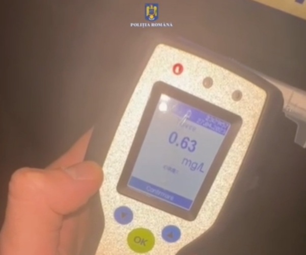 Fiind testat cu aparatul etilotest, conducătorul auto a prezentat o alcoolemie cu o valoare de 0,63 mg/l alcool pur în aerul expirat.