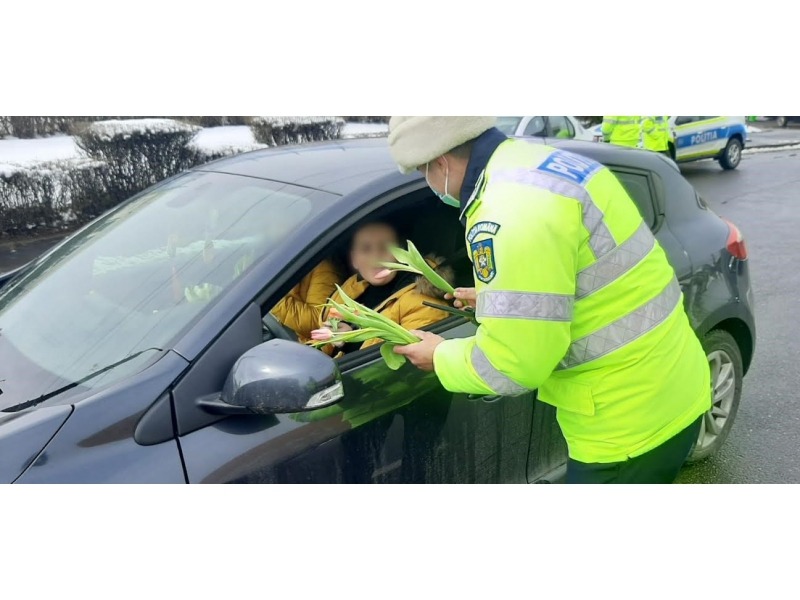 Poliţiştii au oprit în trafic, doamnele sau domnişoarele care conduceau autovehicule pe străzile din întreg județul Dâmbovița, și spre surprinderea acestora, în loc să le solicite documentele pentru a le controla, oamenii legii le-au „sancţionat” cu flori şi felicitări.
