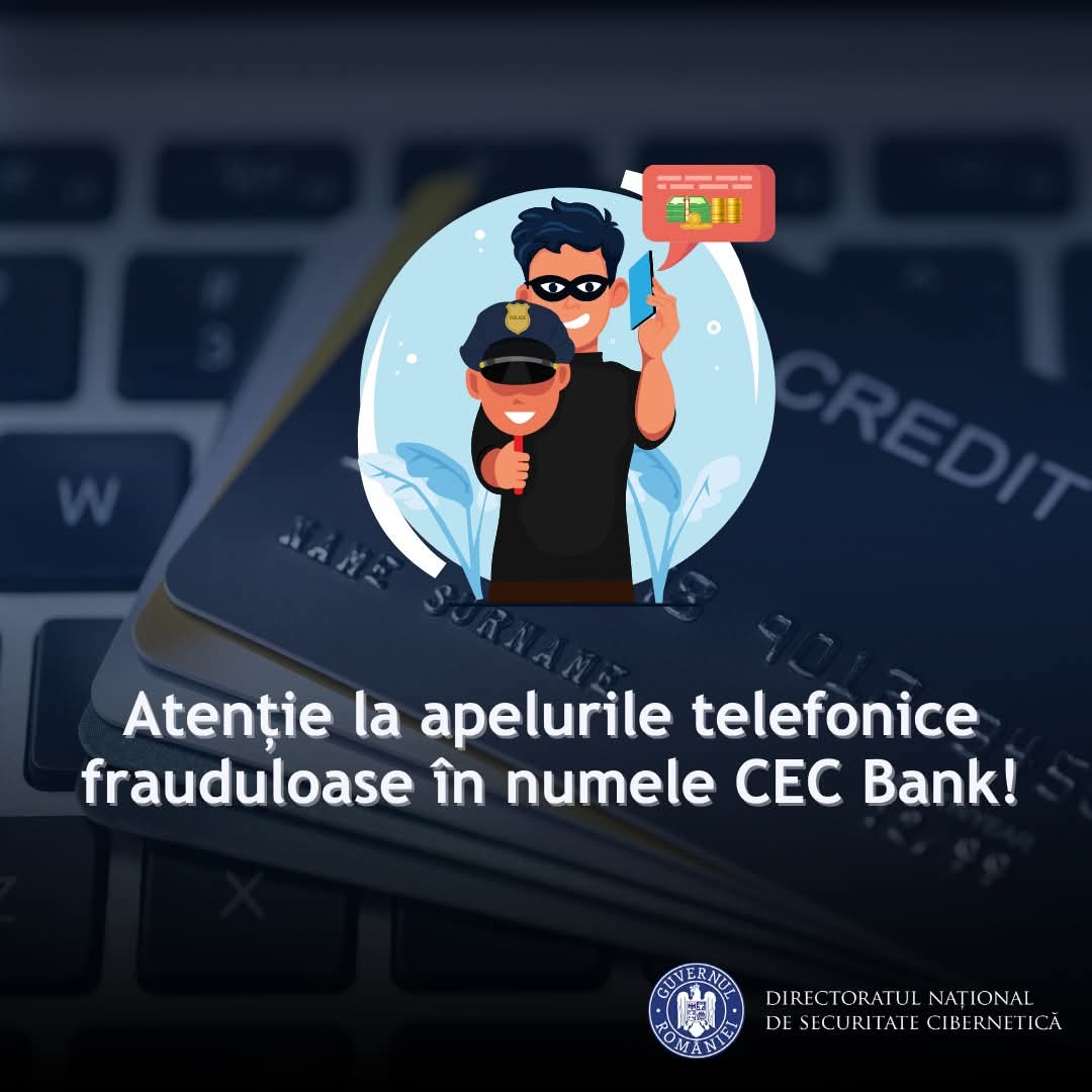 CEC Bank avertizează că nu solicită niciodată, prin telefon, SMS sau e-mail, coduri PIN, parole sau detalii despre carduri. Clienții sunt îndemnați să verifice autenticitatea oricărei comunicări folosind exclusiv canalele oficiale ale băncii.