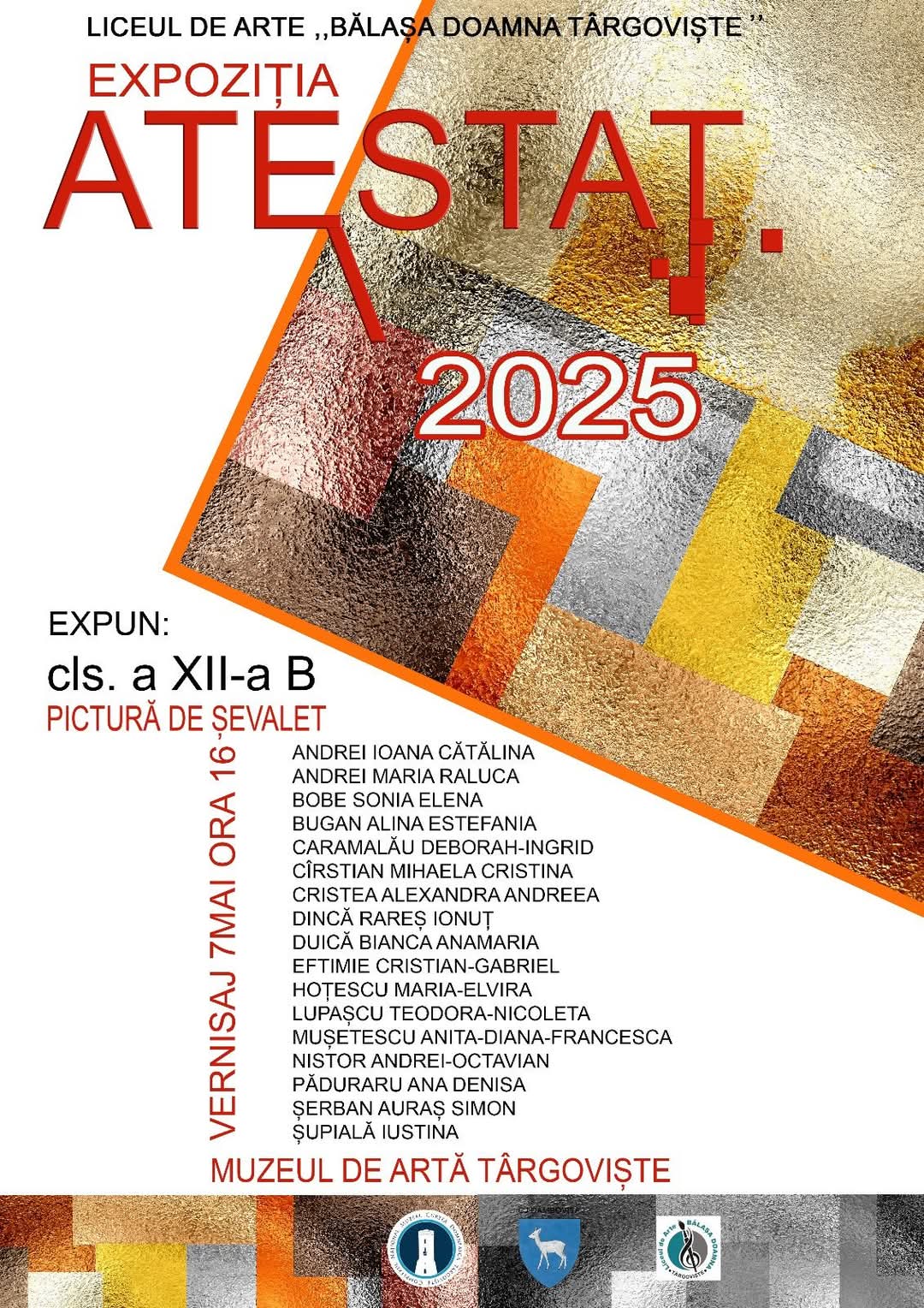 Pe 7 mai, de la ora 16:00, Muzeul de Artă din Târgoviște va deveni scena unei expoziții pline de culoare, talent și emoție: „Atestat 2025”. Evenimentul este organizat în colaborare cu Liceul de Artă „Bălașa Doamna” și marchează prezentarea lucrărilor de absolvire ale elevilor claselor terminale.