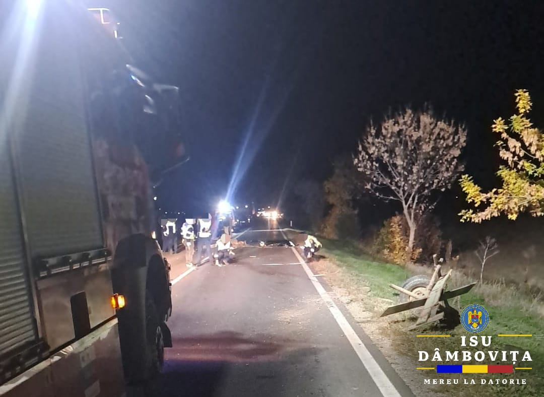 Detașamentul de Pompieri Găești a intervenit cu o autospecială de stingere cu modul de descarcerare, iar Serviciul de Ambulanță Județean Dâmbovița a intervenit cu un echipaj.