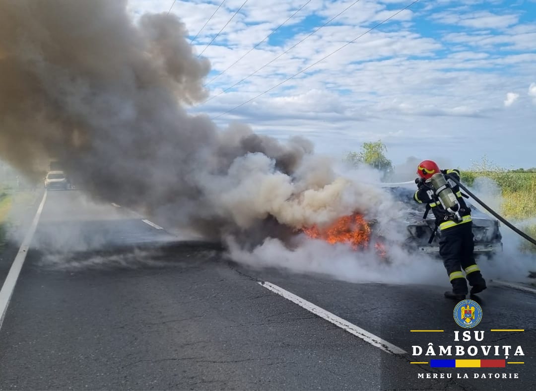 Pompierii dâmbovițeni au fost solicitați să intervină în cazul unui incendiu auto în localitatea Văcărești.