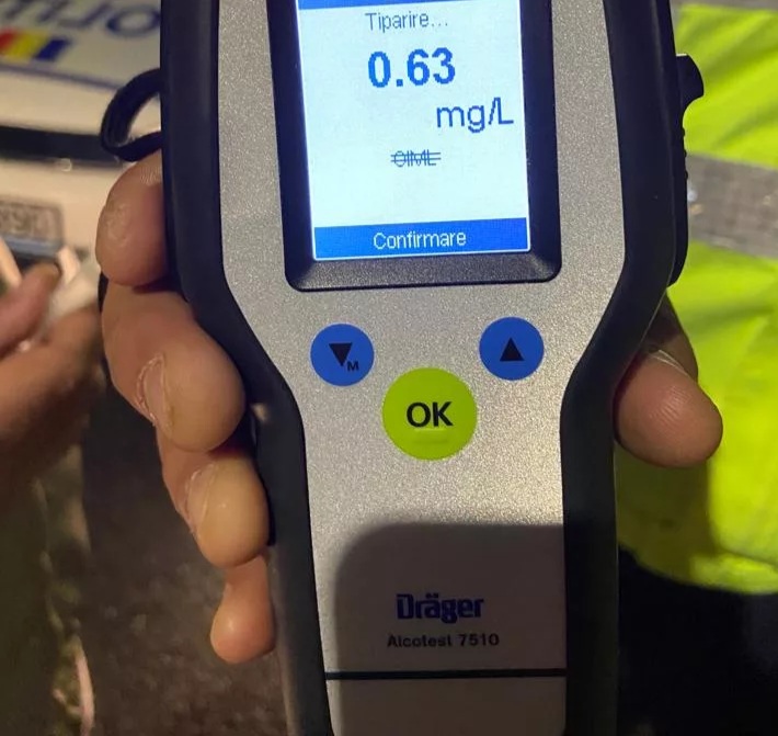 Șoferul de 34 de ani a fost testat cu aparatul etilotest, prezentând o alcoolemie cu o valoare de 0,63 mg/l alcool pur în aerul expirat.